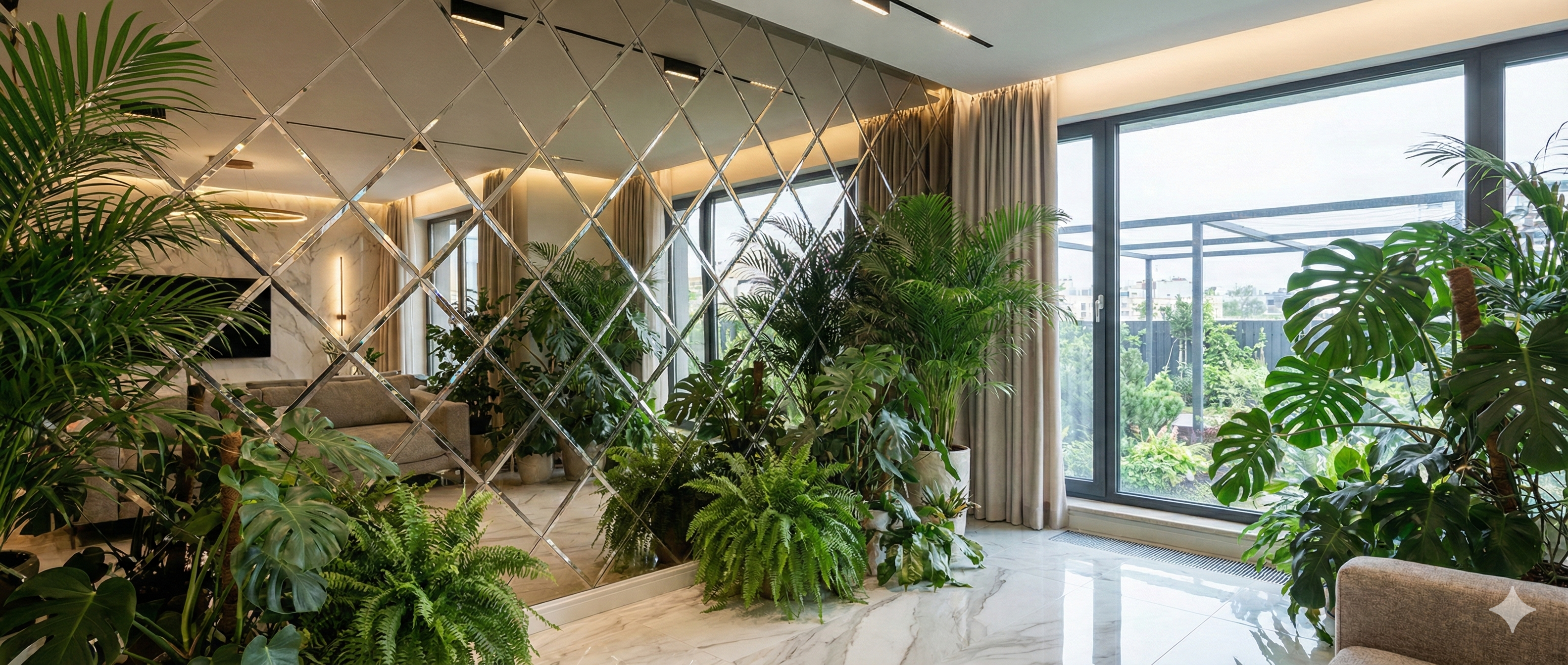 Вартість дзеркальної плитки залежить від форми елементів, кольору дзеркала та загальної площі панно. Ціни починаються від 3 000 грн/м² для класичних моделей. Скористайтесь нашим онлайн калькулятором для миттєвого розрахунку вартості за вашими розмірами.